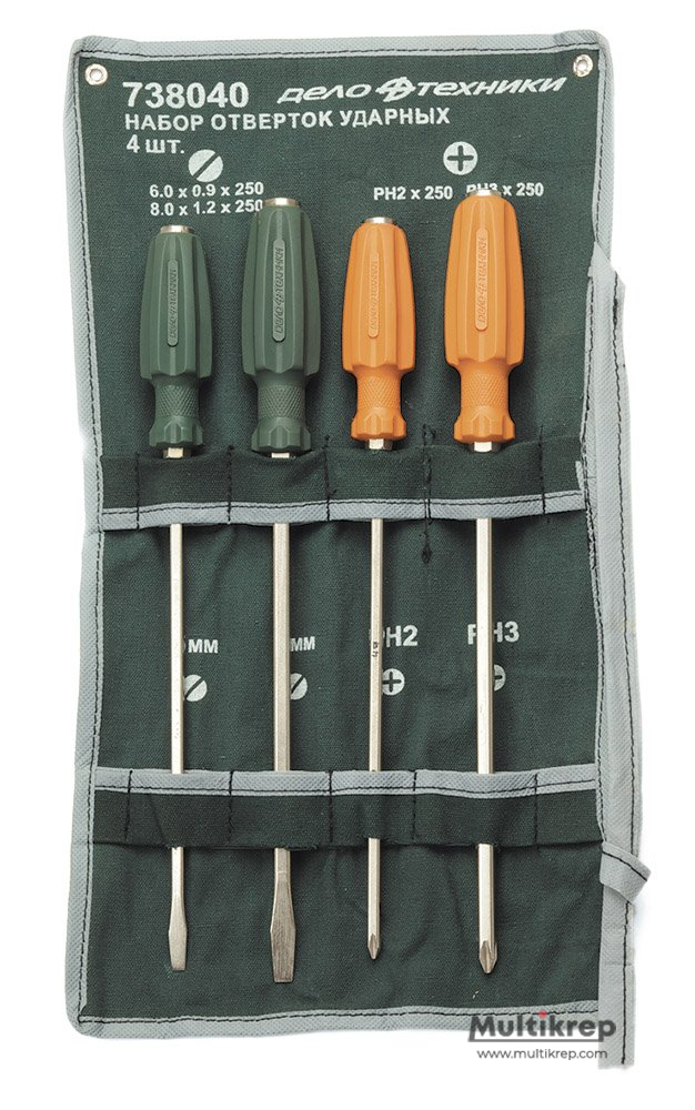 Набор отвёрток усиленных длиной 250 мм (6×0\,9 мм;8×1\,2 мм;PH2;PH3) 4 шт.\, планшет тетрон