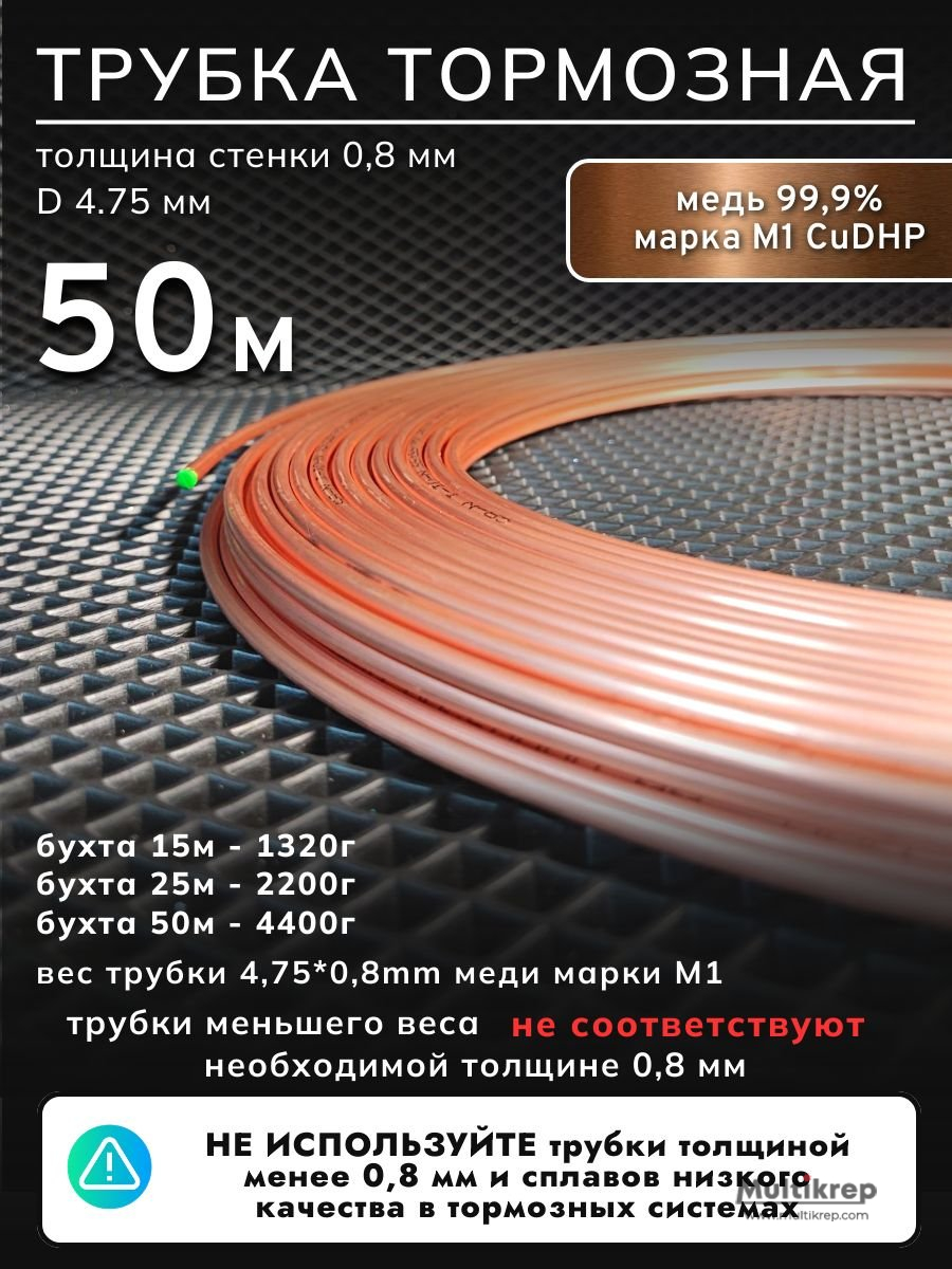 Трубка медная 3/16 (4\,75*0\,80*50 м) в бухтах М1/CuDHP по ГОСТ 617-2006 / EN 12735-1\, мягкая