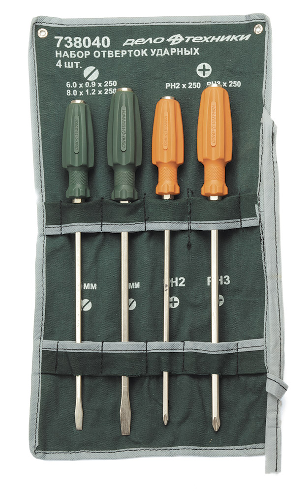Набор отвёрток усиленных длиной 250 мм (6×0\,9 мм;8×1\,2 мм;PH2;PH3) 4 шт.\, планшет тетрон